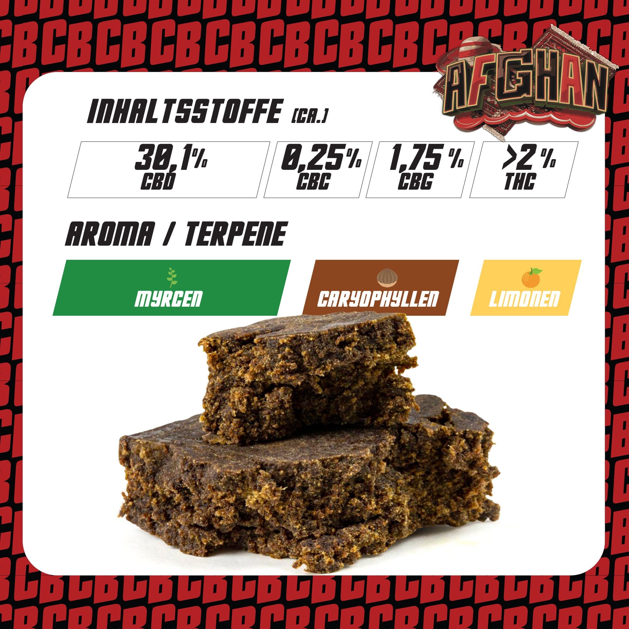 Unser Afghan CBD Hash wird aus den besten CBD-Blüten unter schonenden Verfahren hergestellt. Frei von Chemikalien oder künstlichen Zusätzen, bewahrt dieses Produkt seine natürliche Reinheit und sein volles Spektrum an Aromen. Ein Premium-Hash für Kenner, die Wert auf Qualität und Authentizität legen.