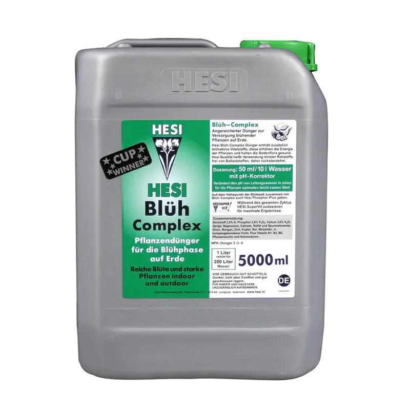Blüh Complex ist ein Produkt, das mit wertvollen Vitalstoffen angereichert ist, welche die Energie der Pflanzen steigern und gleichzeitig für eine stabile Boden- und Wurzelfauna sorgen. Dies fördert das gesunde Wachstum der Pflanzen. Darüber hinaus enthält Blüh Complex einen pH-Korrektor, der die Düngerlösung auf einen optimalen, leicht sauren pH-Wert anpasst.